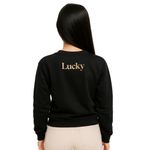 Este buzo negro con cuello redondo de la marca Lucky, es una prenda diseñada para el uso diario, combinando comodidad, resistencia y una presencia marcada.