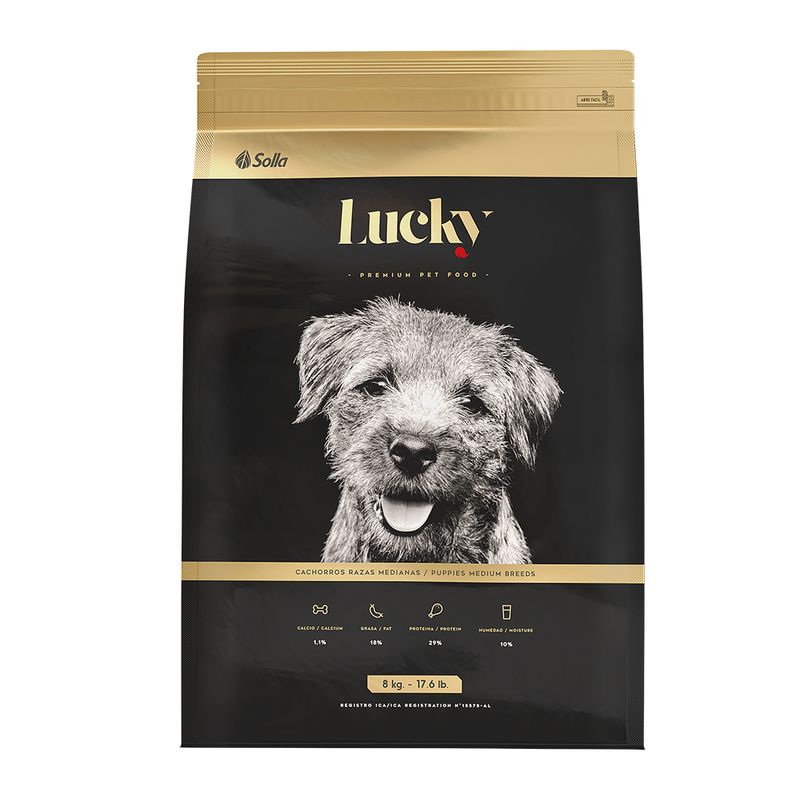 Alimento completo extruido para cachorros de razas medianas, así como para las hembras gestantes y lactantes. De los 1.5 a los 6 meses de edad reparta el alimento diario en 3 a 4 comidas y a partir de los 7 meses en dos comidas. Recuerde que las razas medianas son adultas entre los 12 y 14 meses.