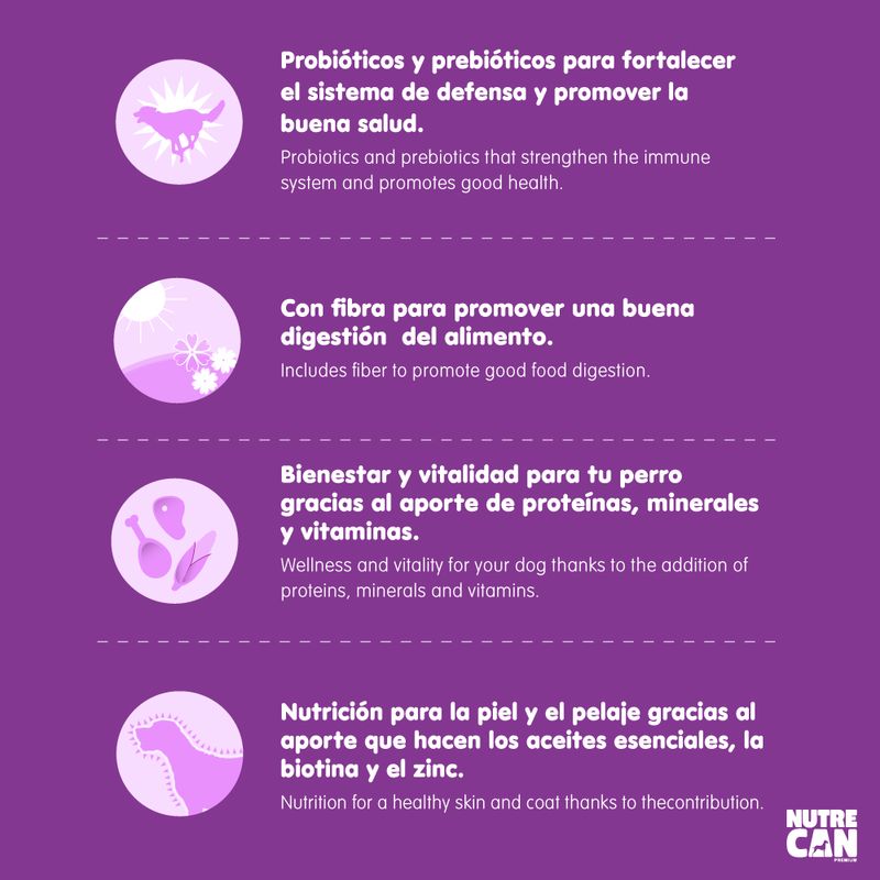 Nutrecan Adultos Razas Pequeñas es un alimento completo y balanceado para llenar todos los requerimientos nutricionales de los perros adultos de Razas pequeñas y miniaturas. Contiene una perfecta concentración de todos los nutrientes proporcionando a sus mascotas toda la nutrición necesaria para mantenerlos sanos y vigorosos.