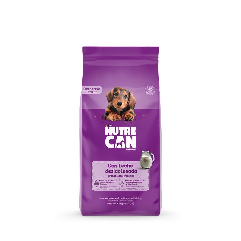 Nutrecan con leche deslactosada: está formulado con ingredientes naturales y de consumo humano para cachorros con sensibilidad a la lactosa. Su leche sin lactosa previene molestias digestivas, y sus proteínas de alta calidad y calcio biodisponible favorecen el desarrollo muscular y óseo. ¡Sin colorantes ni sabores artificiales!