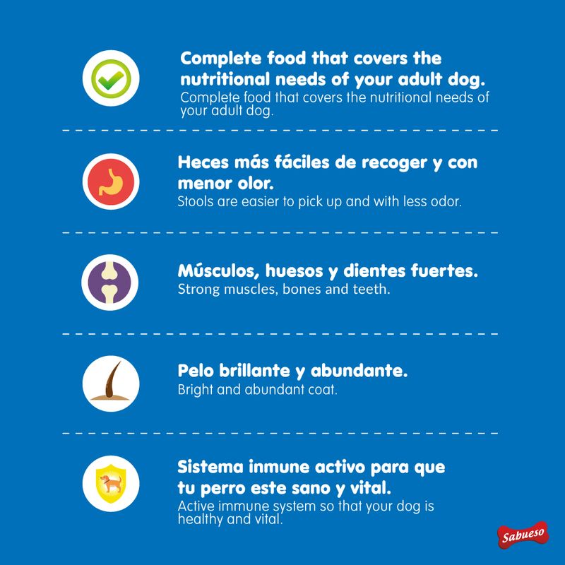 Sabueso Adultos es un alimento completo extruido , cuya fórmula está recomendada para alimentar perros adultos en mantenimiento.